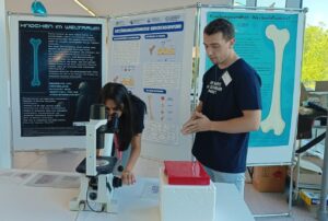 Children explored the interaction between osteoblasts and osteoclasts in a playful way – including observing real cells under the microscope.